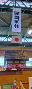 満員御礼の札も掲げられ、体育室が相撲会場へと変わりました。