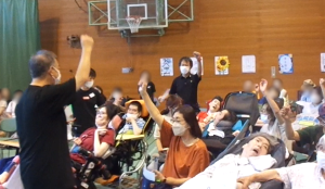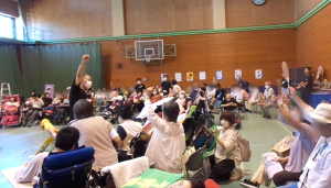 各グループの本人さんやご家族、地域の方みんなで土俵を叩きます。