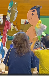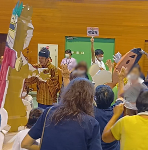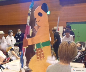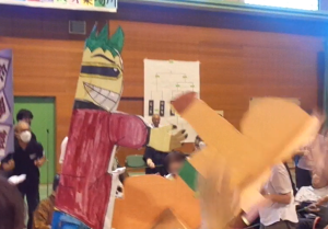 各グループでつくった巨大紙相撲で優勝を争います。