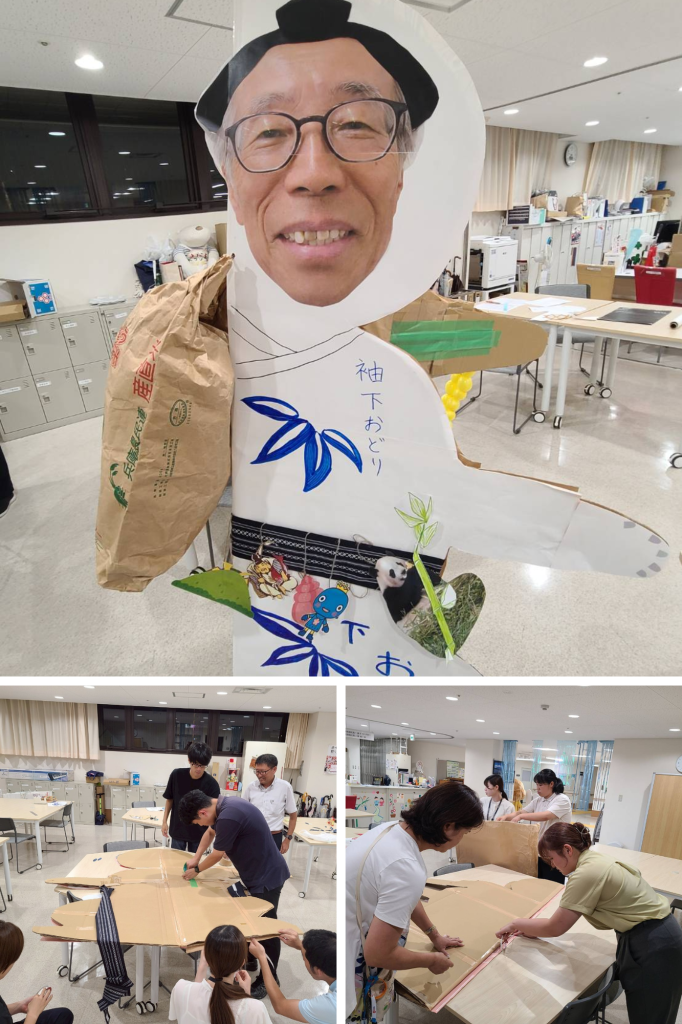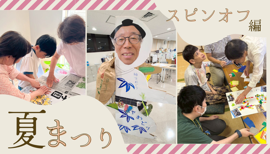 「突然の巨大梶取丸登場!地区からの懸賞旗で青葉園の夏祭りを盛り上げます」