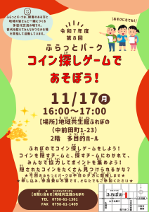 次回のふらっとパークは11月17日(月)16:00~17:00に開催します!